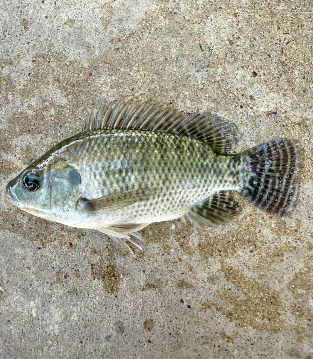 As a freshwater fish, Bluegill sunfish are quite common all over North America in ponds, rivers and more. Measuring about 6 inches in length, and sometimes getting up to a foot long, they typically weigh less than a pound. With a dark green body and some dark bars running vertically down their sides, female Bluegills have a yellow belly and males have a red belly. Spawning season starts in May and runs through August.